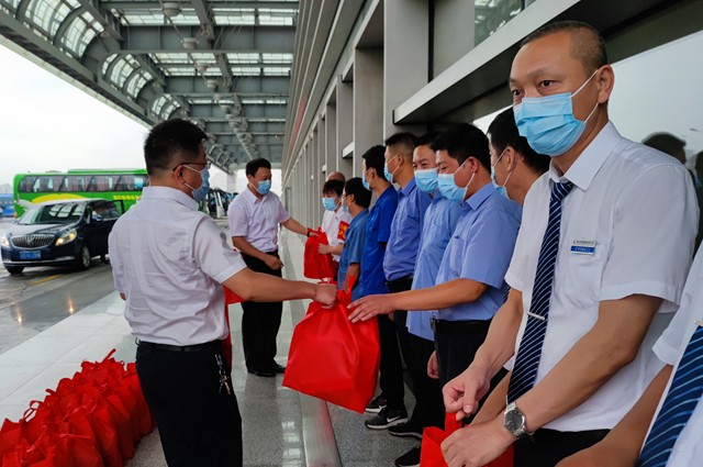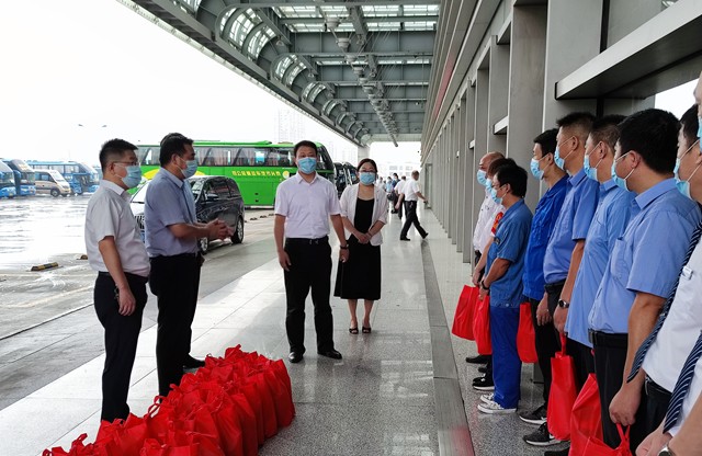 8月12日上午,市交通運(yùn)輸局領(lǐng)導(dǎo)薛曄、曹建中一行至常州汽車總站,向高溫下堅(jiān)守防疫一線的工作人員進(jìn)行慰問。集團(tuán)公司董事長(zhǎng)兼總經(jīng)理謝星,黨委負(fù)責(zé)人、紀(jì)委書記兼工會(huì)主席王連保等陪同。
